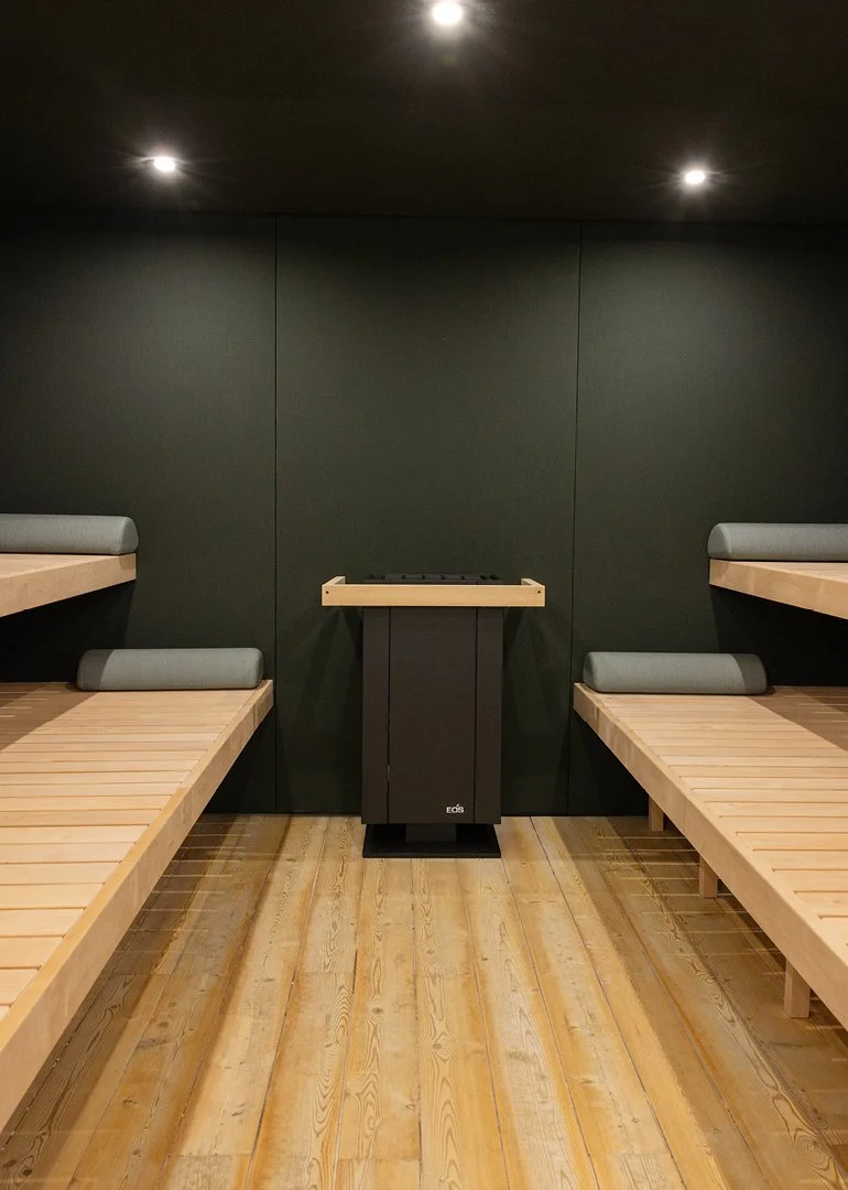 In Thermen und Spa-Bereichen integriert sich die InnoZen Sauna selbstverständlich in Ruhe- und Entspannungszonen. In Verbindung mit den IKONO Loungemöbeln entsteht ein stimmiges Raumkonzept mit klarer Formsprache, das Ruhe ausstrahlt und den gesamten Bereich als Einheit erlebbar macht.