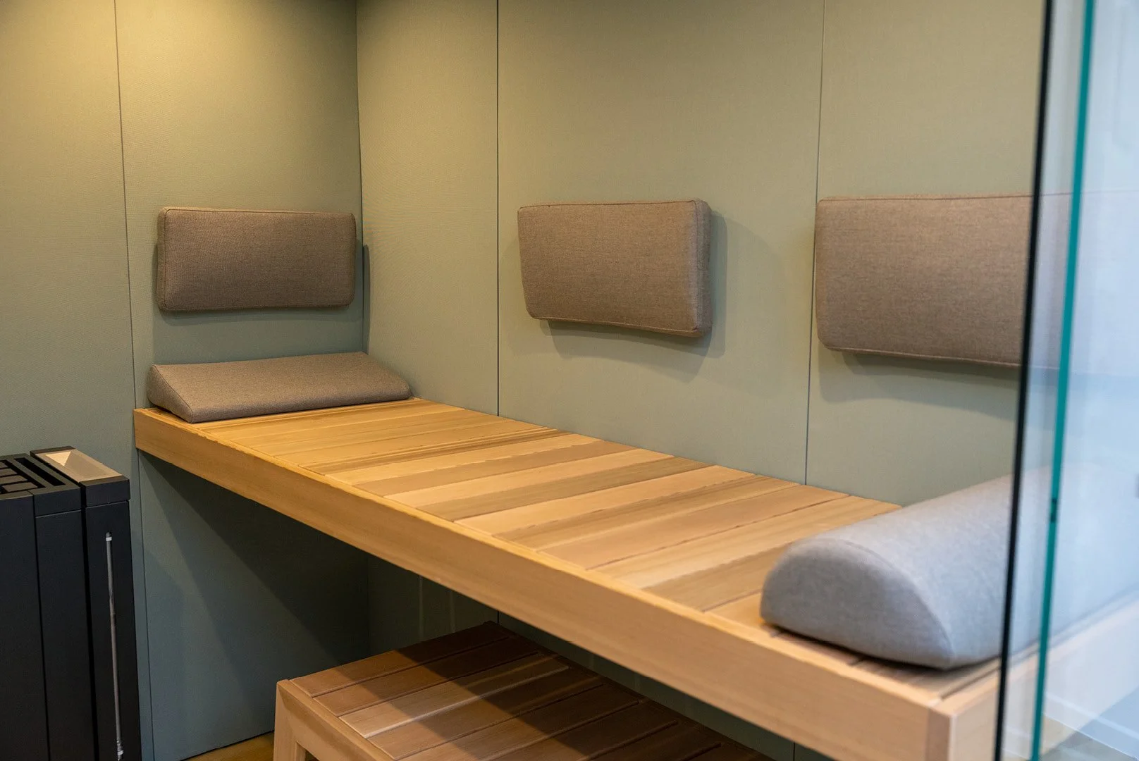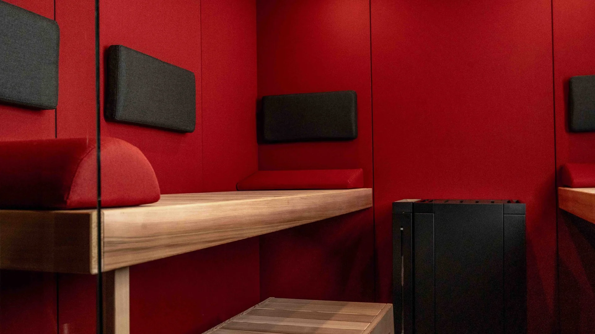The functional fabrics used in the sauna are designed to offer superior hygiene and are easier to clean compared to traditional wood. Generally, a simple wipe-down with a damp cloth, similar to cleaning furniture, is sufficient. The technical acrylic fibers are water-repellent and do not absorb bacteria or odors. In the unlikely event of a staun, we recommend using a mild soap solution and a cleaning cloth for effective removal.